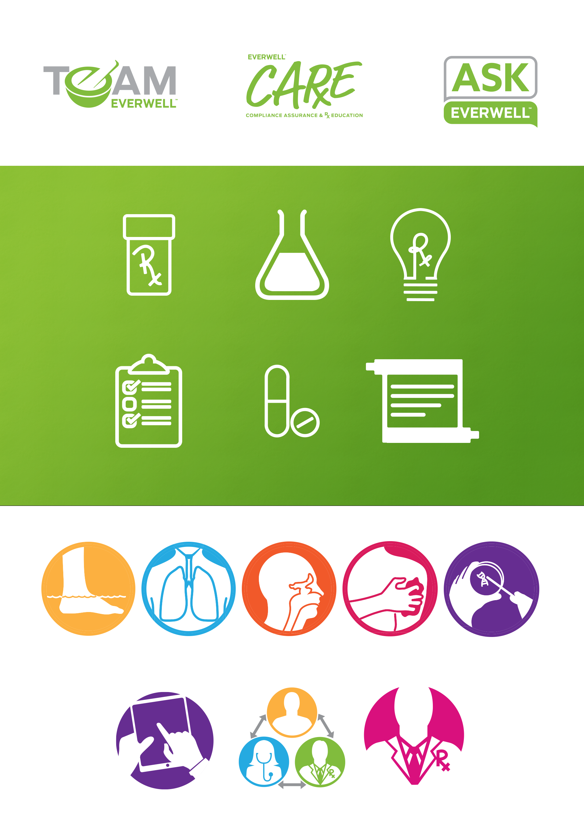 Icons, Illustrations, Patterns and Sub-Brands that I've created for Everwell.